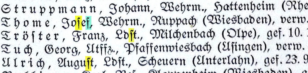 2. Unter »vermißt sind nur die Vermißten geführt, deren Verbleib unbekannt