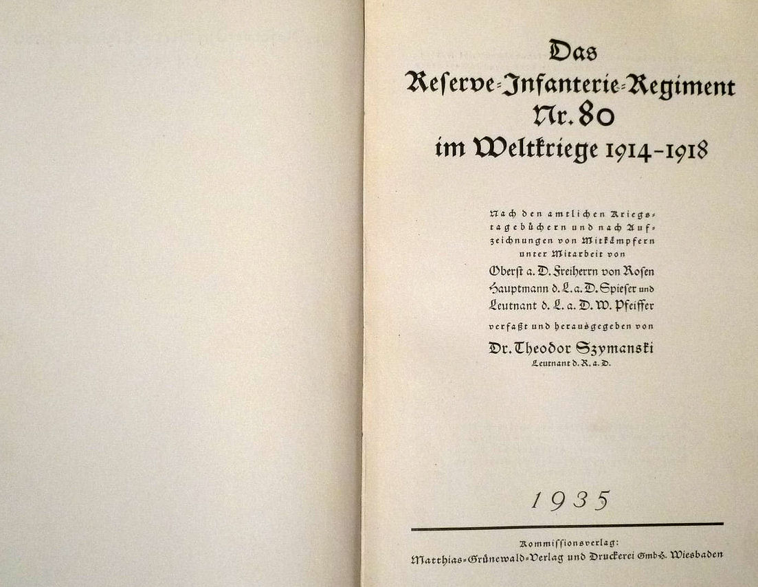 Theodor Szymanski: "Das Reserve-Infanterie-Regiment Nr. 80 im Weltkriege 1914-1918"