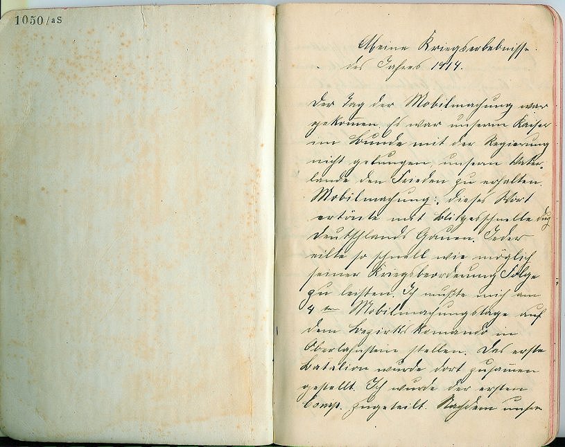 ____________________ | Meine Kriegserlebnisse des Jahres 1914 [1] < Der Tag der Mobilmachung [2] war gekommen, es war unserem Kaiser im Bunde mit der Regierung nicht gelungen, unserem Vaterland den Frieden zu erhalten. Mobilmachung - Dieses Wort ertönte mit Blitzesschnelle durch Deutschlands Gauen. Jeder eilte so schnell wie möglich seiner Kriegsverordnung folge zu leisten. Ich musste mich am 4. Mobilmachungstage auf dem Bezirkskommando in Oberlahnstein stellen. Das erste Bataillon wird dort zusammengestellt. Ich wurde der 1. Comp.[3] zugeteilt, nachdem unsere > ____________________ |