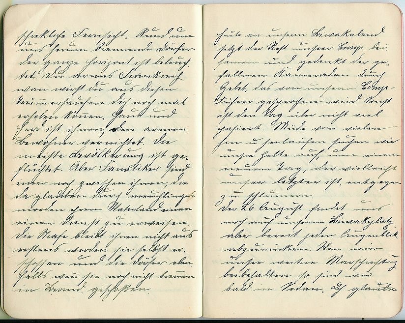 vielleicht unser letzter ist, entgegen zu schlummern. Der 26. August findet uns noch auf unserem Biwakplatz, aber bereit jeden Augenblick abzurücken. Wenn wir unsere weitere Marschrichtung beibehalten so sind wir bald in Sedan. Ich glaube, > _______________ |